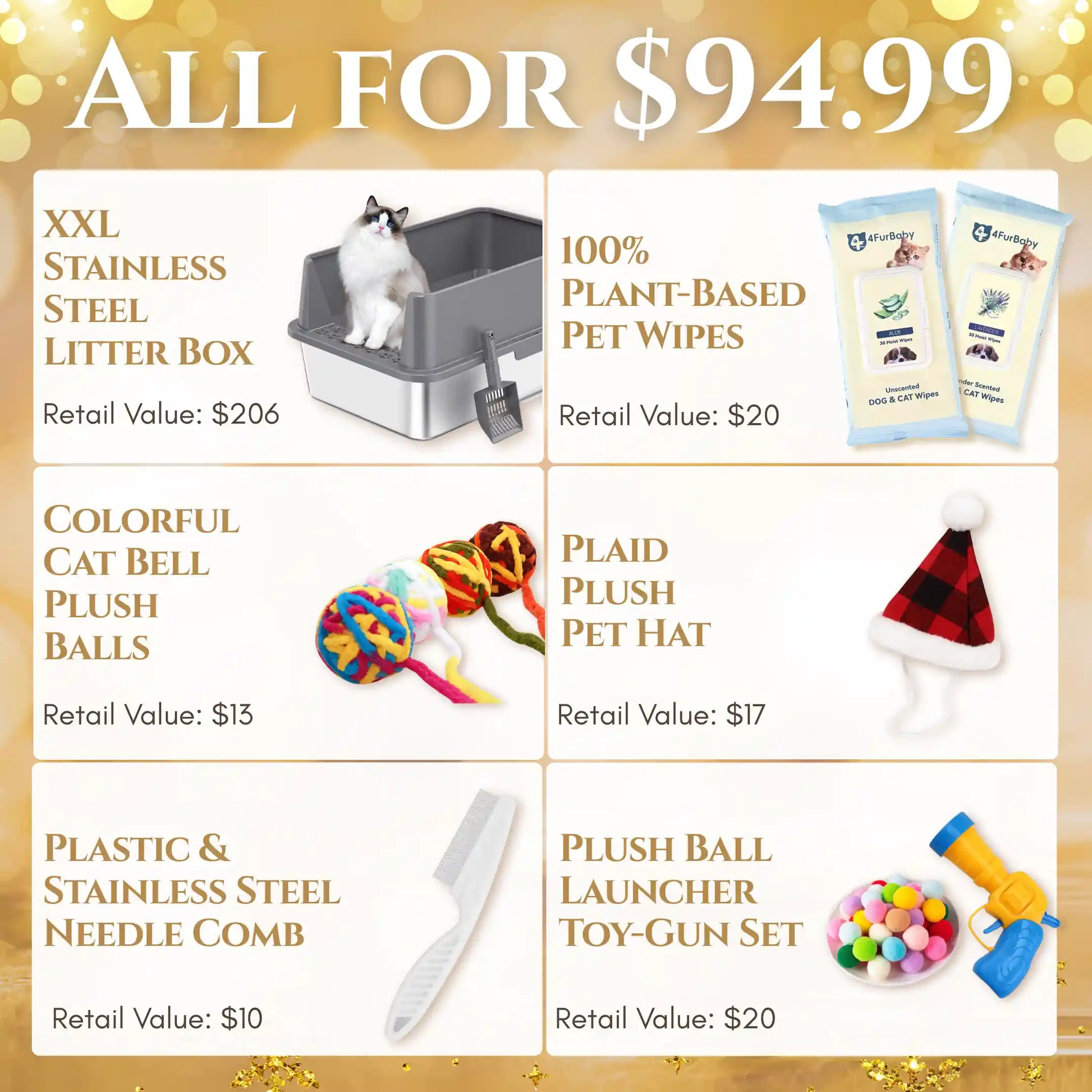 XXL Stainless Steel Cat Litter Box with High Sides and Low Entry – designed for large cats, multi-cat homes and high-spraying cats.